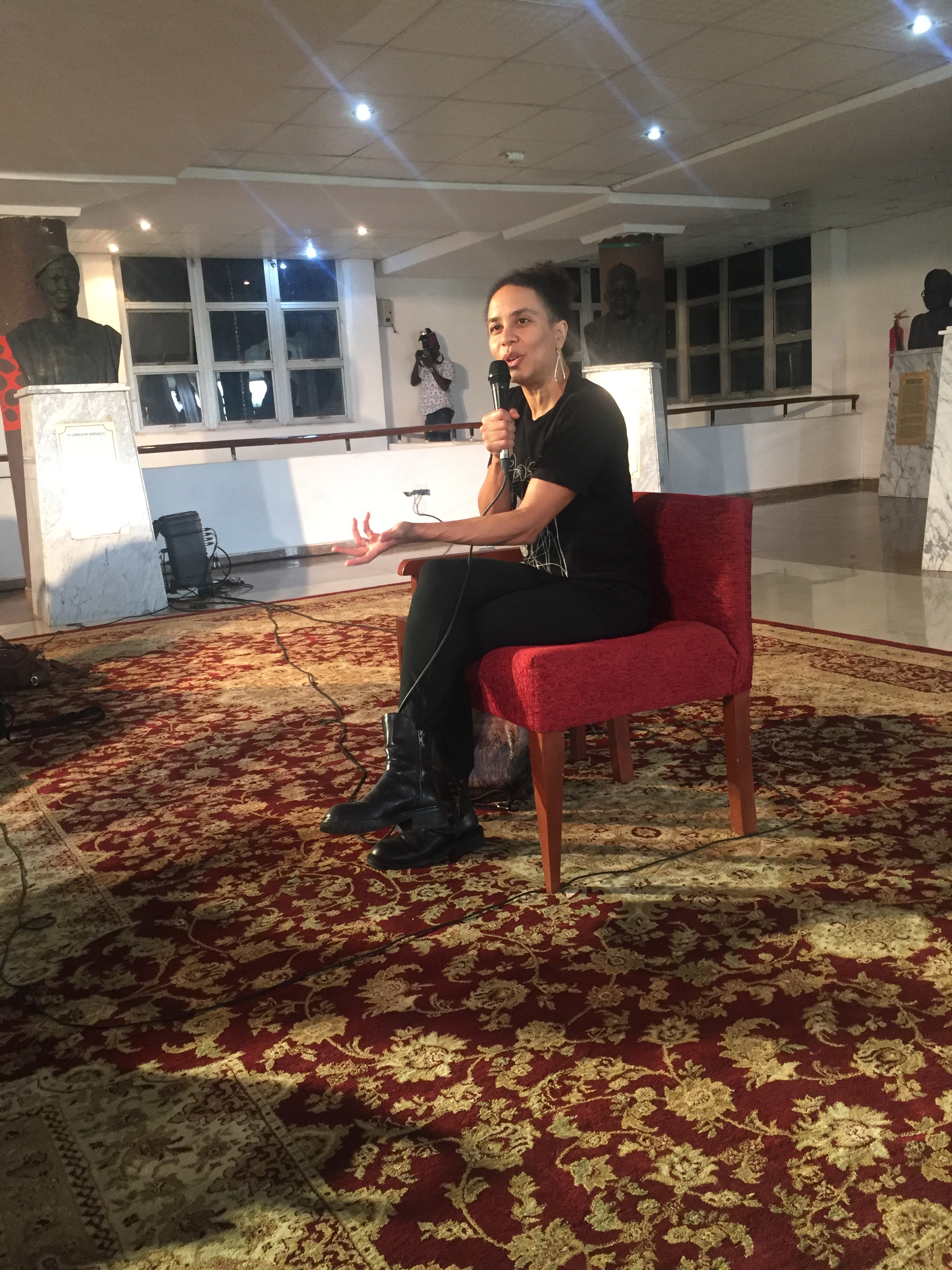 We return to the workshop for a question and answer session with NoViolet Bulawayo and Helon Habila, after which the 3rd class with Sarah Manyika begins. Sarah is an animated woman with lovely eyes and a lot of energy. Her session is by far my favourite, and tired as I am, I have a lot of fun. She asks us to pick a random person and write about their personalities, with their shoes as our only muse. It seems challenging at first, but in a few minutes, I managed to write something captivating about Mma through her shoes.